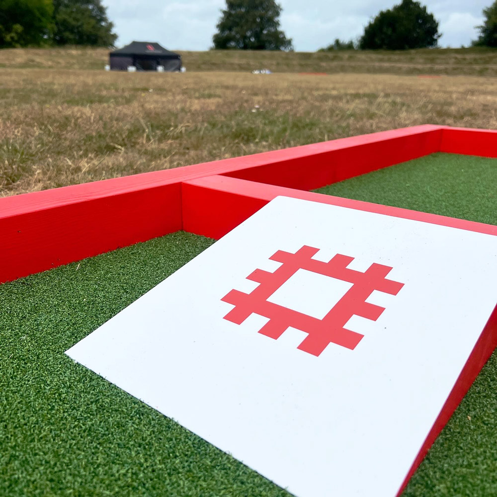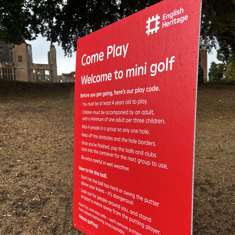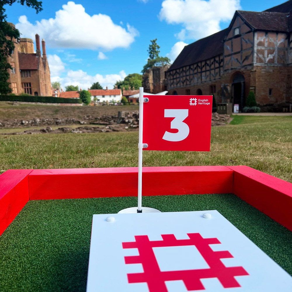 Each course was fully customised in the striking English Heritage branding, with the holes standing out brilliantly in the organisation’s signature red.