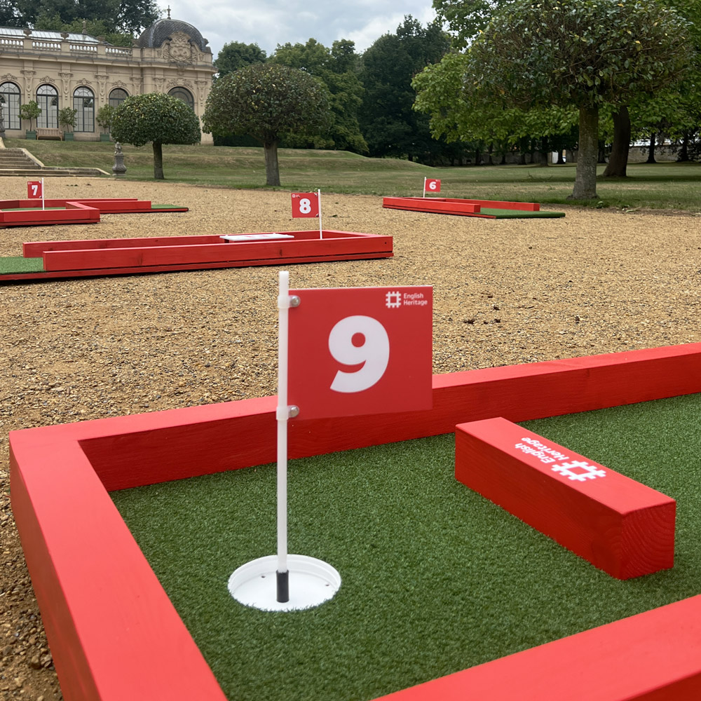 We were delighted to be invited by English Heritage to create six bespoke 9-hole pop-up mini golf courses throughout August. These were installed at some of the nation’s most iconic sites, including Audley End House and Gardens, Carisbrooke Castle, Kenilworth Castle, Osborne House, Pendennis Castle, and Wrest Park.